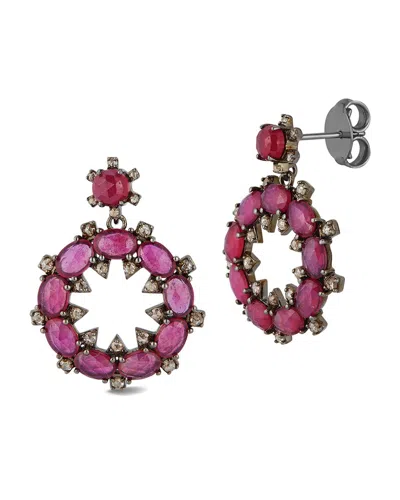 Silver 0.98 Ct. Tw. Diamond & Glass Filled Ruby Drop Earrings In Pink