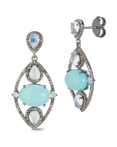 Silver 9.50 Ct. Tw. Diamond & Aqua Chalcedony Earrings In Blue