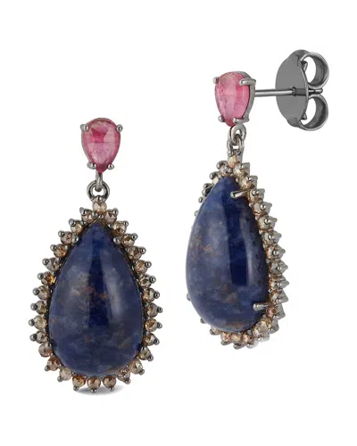 Silver 1.41 Ct. Tw. Diamond & Gemstone Drop Earrings In Blue