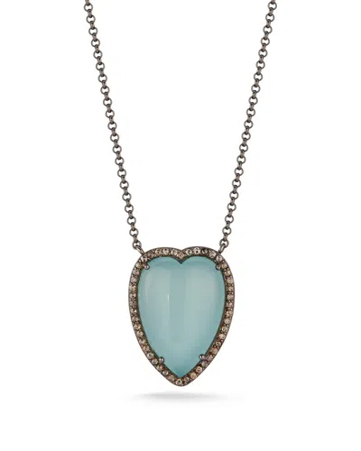 Silver 25.88 Ct. Tw. Diamond & Aqua Chalcedony Heart Necklace In Gold