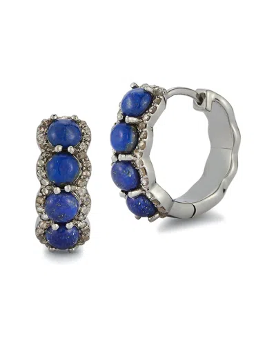 Silver 2.69 Ct. Tw. Diamond & Lapis Earrings