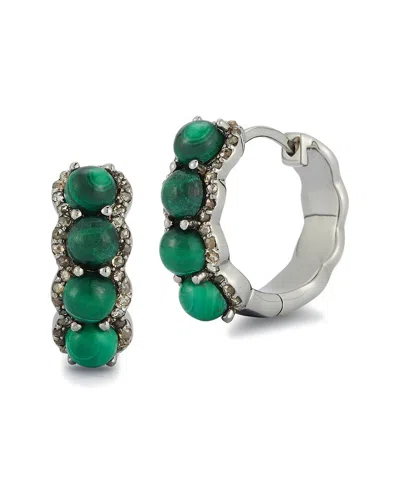 Silver 4.06 Ct. Tw. Diamond & Malachite Earrings In Green