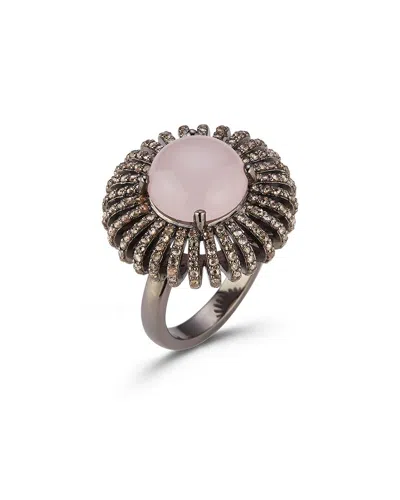 Silver 6.85 Ct. Tw. Diamond & Rose Quartz Statement Ring In Gold