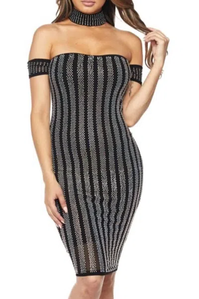 Off The Shoulder Dress In Black In Grey