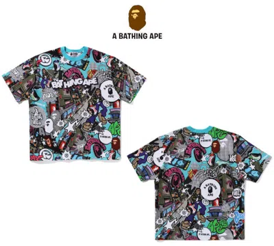 Pre-owned A Bathing Ape Men's Relaxed Fit T-shirt 2024 Ss Model Comic Art Pattern Jpn In Multicolor
