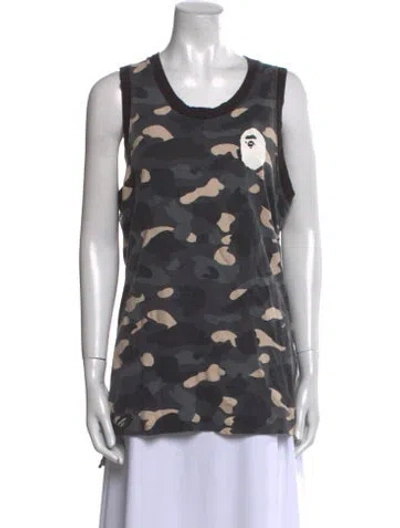 Pre-owned Printed Scoop Neck Top In Gray