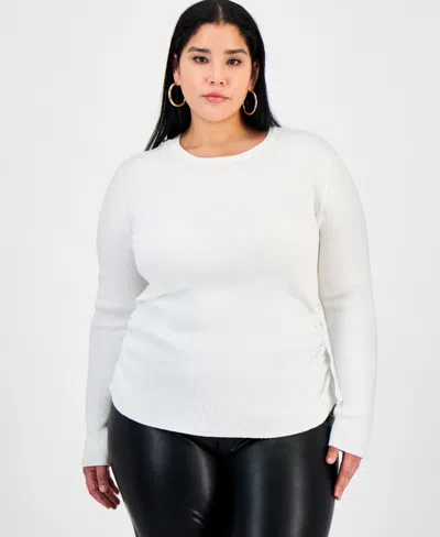 Trendy Plus Size Long Sleeve Ribbed Knit Top, Macy's Exclusive In Black