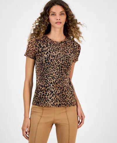 Women's Leopard-print Short-sleeve Mesh Top, Macy Exclusive In Animal Print