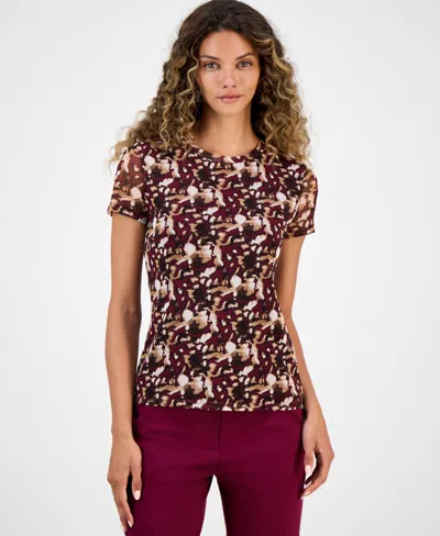 Women's Printed-mesh Short-sleeve Tee, Macy's Exclusive In Brown