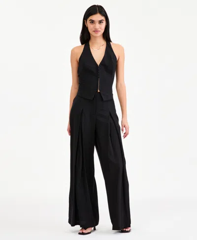 Women's High-rise Linen-blend Wide-leg Pants, Macy's Exclusive In Black