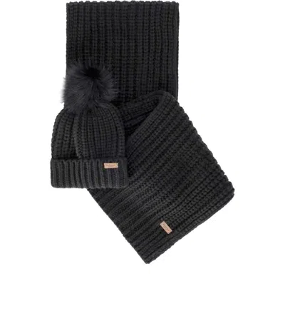 Pendle Logo Patch Ribbed Beanie Scarf Set In Multi