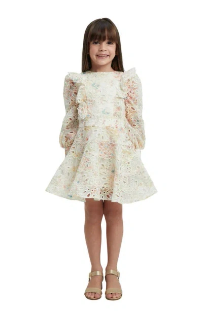 Kids' Margot Miley Long Sleeve Cotton Lace Party Dress In Orchid White