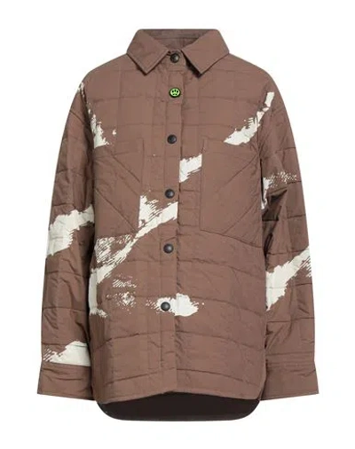 Woman Puffer Camel Size M Cotton, Elastane In Brown