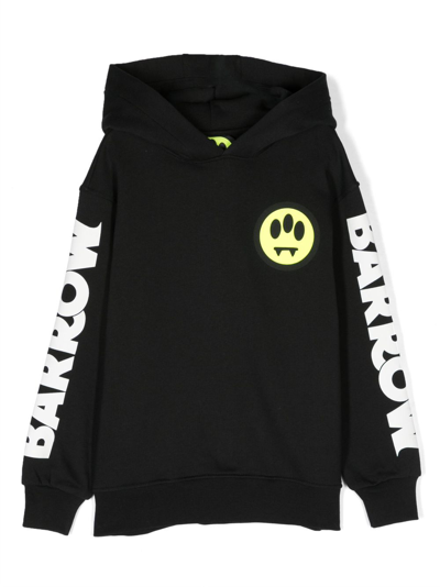 Kids' Smiley-print Cotton Hoodie In Nero