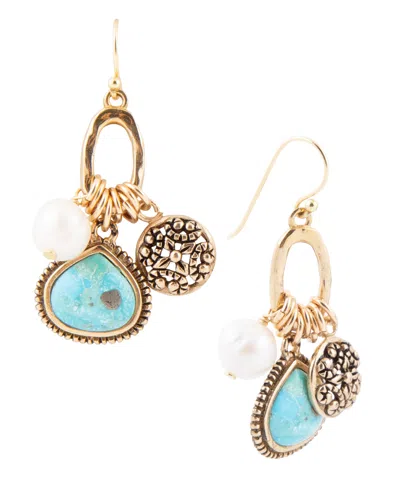 Blue Turquoise And White Cultivated Pearl Multi Charm Earrings