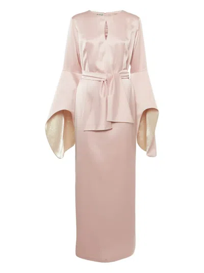 Pre-owned Pink Satin Sleeve Detail Belted Alchemilla Maxi Dress Xl