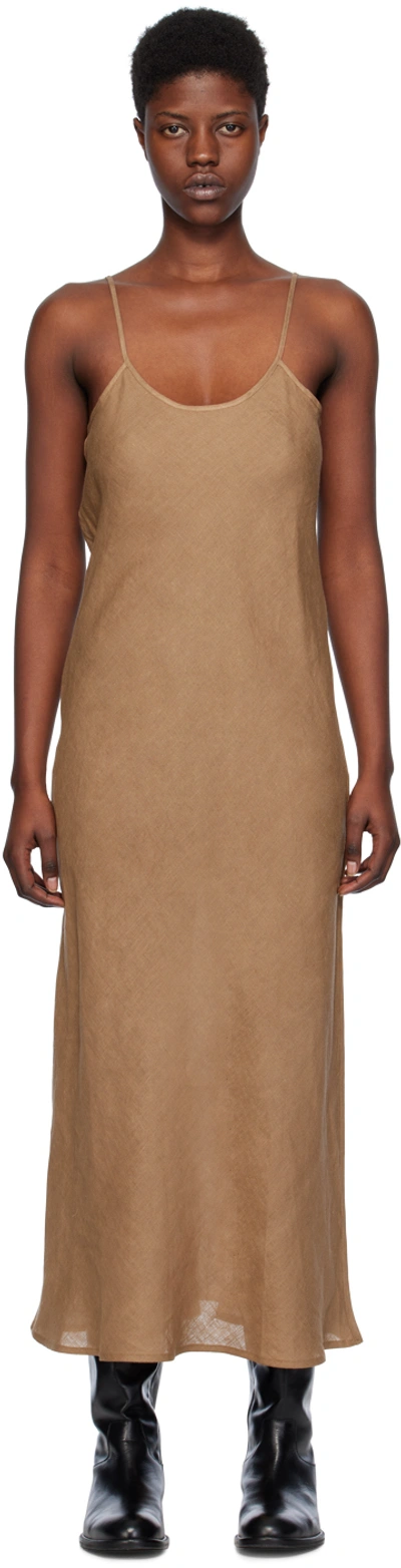 U-neck Sleeveless Linen Midi Dress In Brown