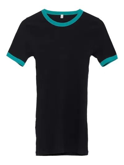 Ribbed Teal-trimmed Top In Black