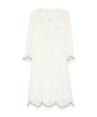 Bluma Flared Cut-out Detail V-neck Dress In Ecru In White
