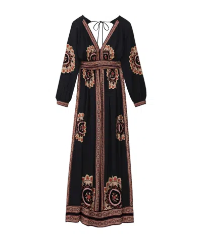 Ba & Sh Waist Tie Silver-trimmed Floral Dress In Black Viscose In Multi