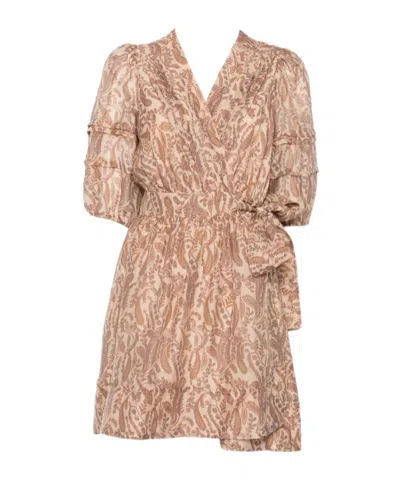 Printed Quarter-sleeve Mini Dress In Cream Viscose In White