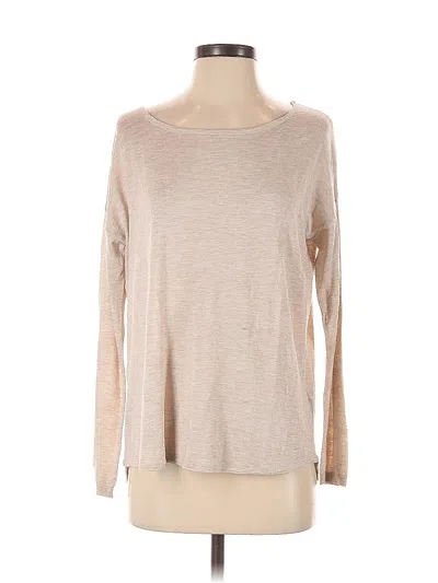 Pre-owned Long Sleeve Top Tan Boatneck Tops In Brown