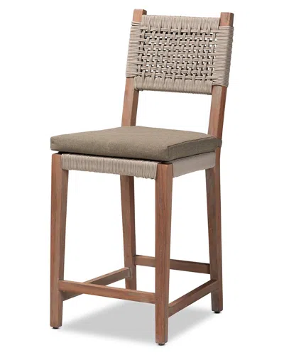 Heyna Woven Rope Mahogany Counter Stool In Grey