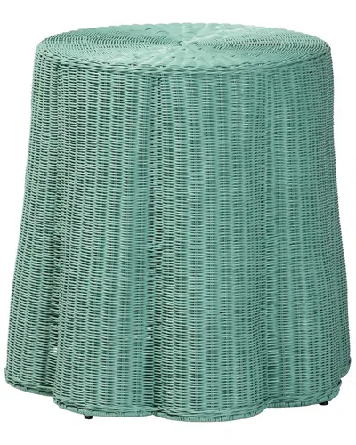 Palm Scallop Rattan Console Table In Blue