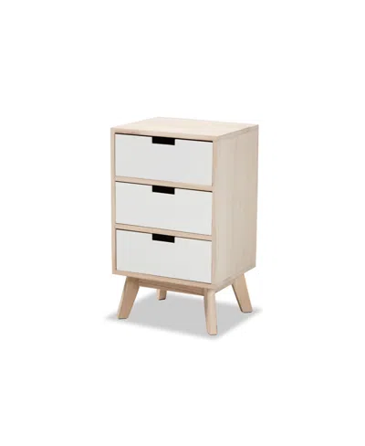 Halian Mid-century Modern Light Brown 3-drawer Nightstand In White