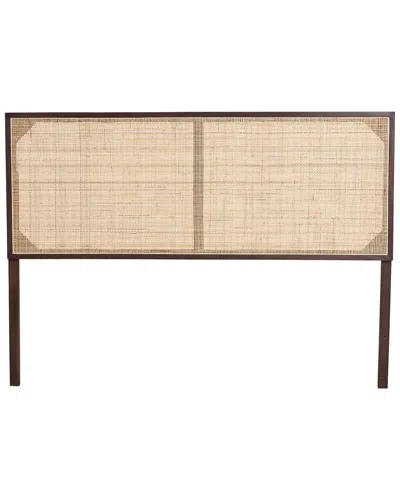 Aurelia Modern Bohemian Bayur Wood & Rattan Queen Size Headboard In Brown