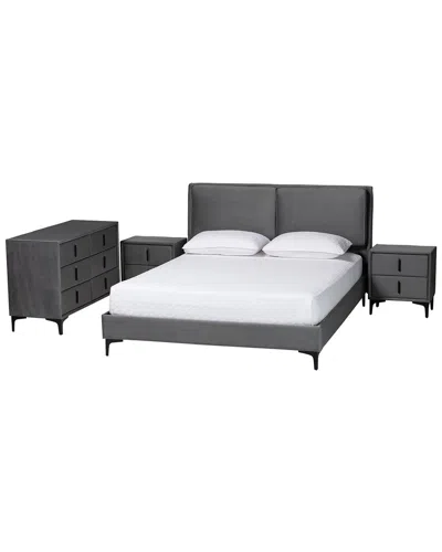 Etienne Modern Velvet Queen 4pc Bedroom Set In Gray