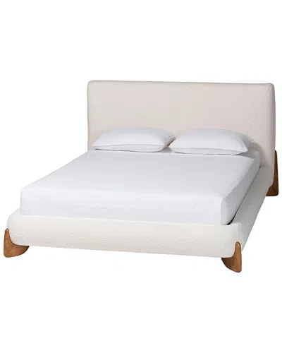 Vinicio Mid-century Modern Boucle Queen Platform Bed In White