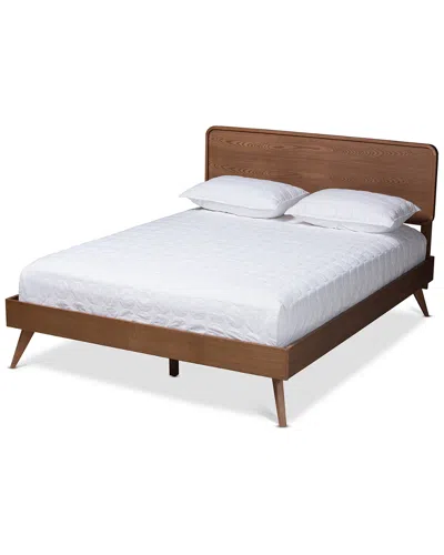 Elston Mid-century Modern Walnut Brown Finished Wood & Synthetic Rattan King Size Plat
