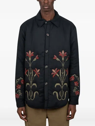 Chitin Front-pocket Floral-embroidered Shirt In Blue
