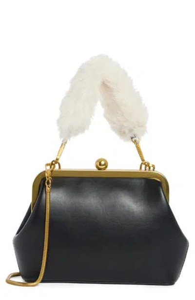 Whipstitch Faux Shearling Tote Bag With Pouch In Black