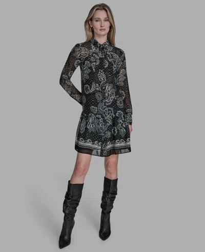 Women's Drop-waist Shift Long Sleeve Dress In Black