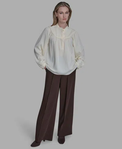 Women's Long-sleeve Tie-neck Ruffle Cuff Blouse In Neutral