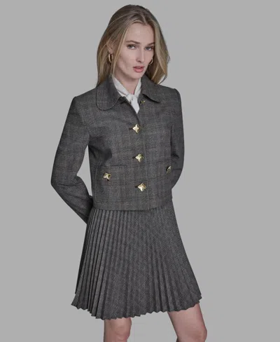 Women's Novelty Plaid Button Down Jacket In Gray