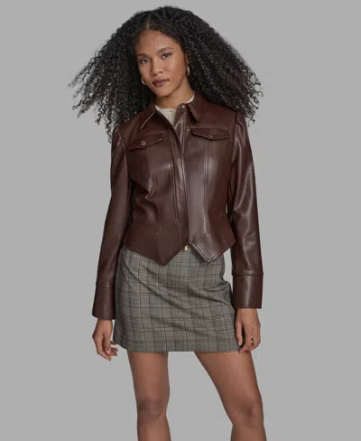 Women's Seamed Notch Hem Long Sleeve Jacket In Brown