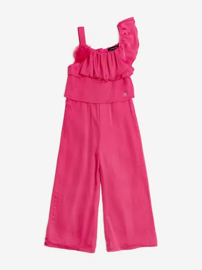 Kids' Girls Asymmetric Shoulder Jumpsuit With 3d Tulle Flower In Pink