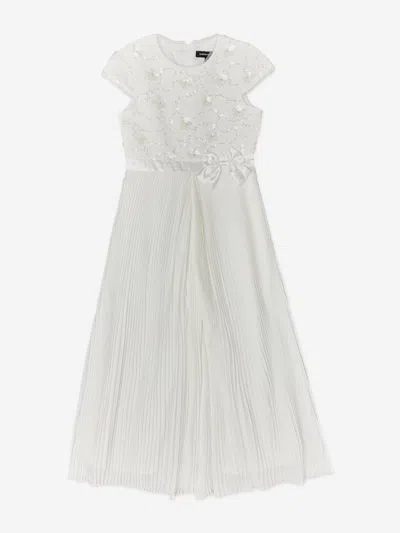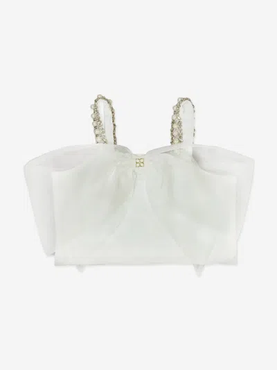 Kids' Girls Tweed Jumpsuit With Satin Bow In White