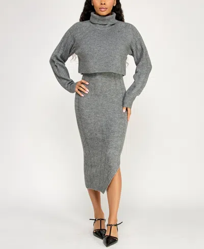 Juniors' Long Sleeve Mock Neck Slim Sweater Dress In Black