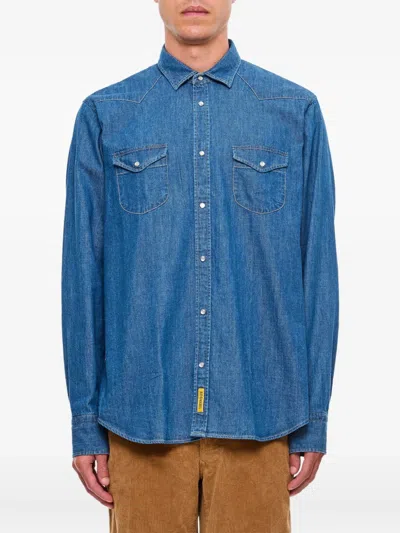 Button-fastening Chest-pocket Shirt In Blue