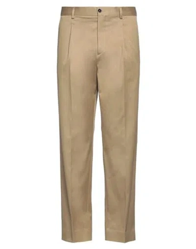 Man Pants Camel Size 35 Cotton, Elastane In Beige