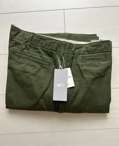 Pre-owned Plus Mil Trousers Herringbone Wide Pants Olive S-xl Limited Kyoto Tokyo In Green