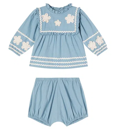 Baby Inga Set Of Cotton Top And Shorts In Blue