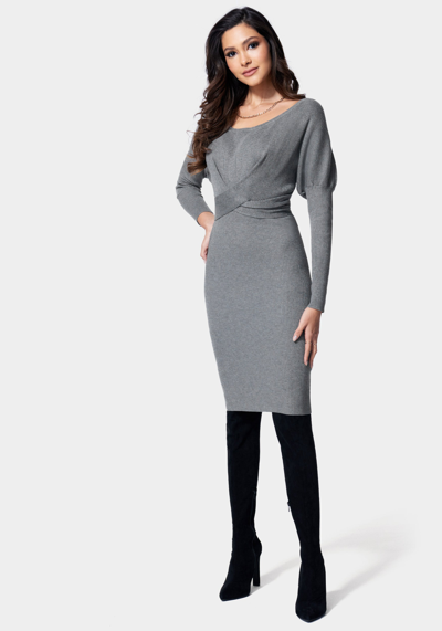 Surplice Fit And Flare Sweater Dress In Heather Gray