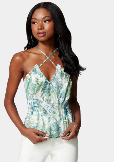 Scoop Neck Lace Up Printed Corset Top In River Blossom Print