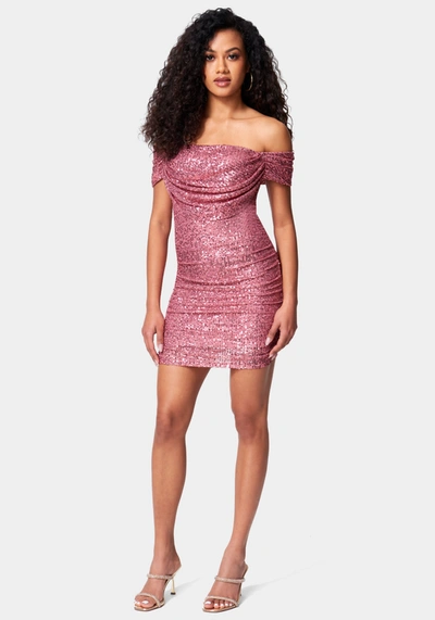 Sequin Drapey Ruched Mini Dress In Mauvewood