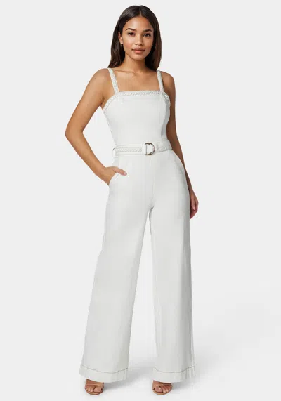 White Braided Wide Leg Denim Jumpsuit In Soft White Wash